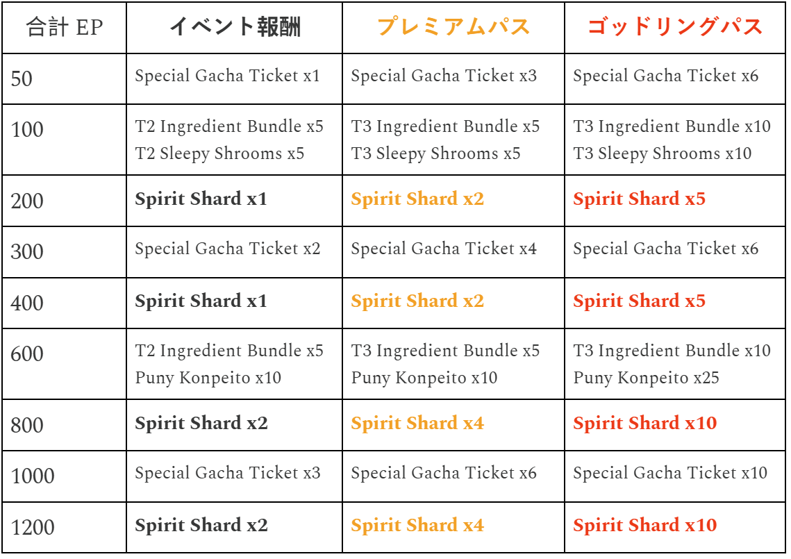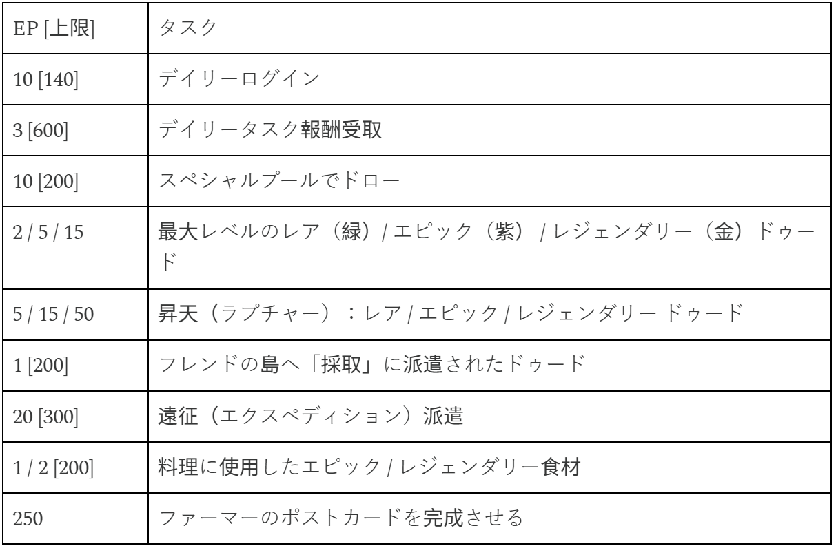 以下のタスクをクリアして、イベントポイント(EP)を貯めるのを忘れないようにしましょう: